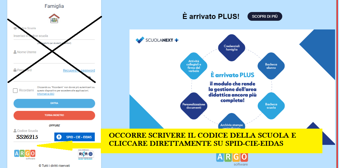 Si informano tutti i destinatari in indirizzo che a partire dall’ a.s. 2025/2026 si potrà accedere al registro elettronico ARGO esclusivamente tramite l’identità digitale (SPID, CIE, EIDAS) insererendo nell'apposito campo il codice della scuola SS26215. L’attivazione dello SPID ad un minore può avvenire accedendo al profilo del proprio gestore SPID per poi collegarsi alla sezione ID minore.
